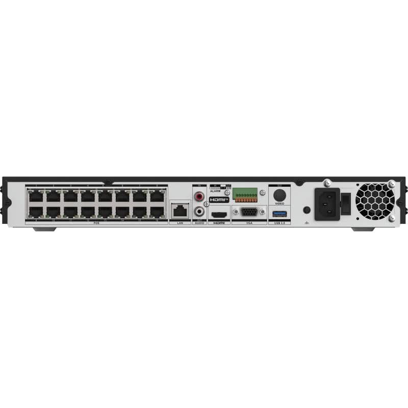 - 16 ports PoE (RJ-45), IEEE 802.3 af/at pris en charge pour l'alimentation des caméras IP via le NVR