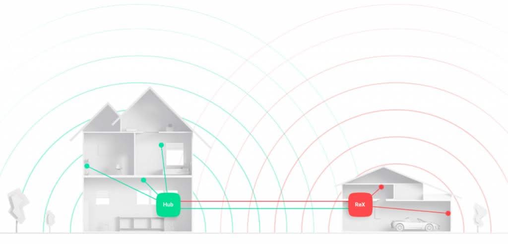 ReX integreert de apparaten in een autonome groep binnen het systeem. De versterker neemt de controle over de situatie volledig over als de verbinding met de hub om een of andere reden wordt onderbroken. Als één van de detectoren een alarmsignaal uitzendt, kan ReX de sirene activeren om de aandacht op het incident te vestigen en de inbreker af te schrikken.